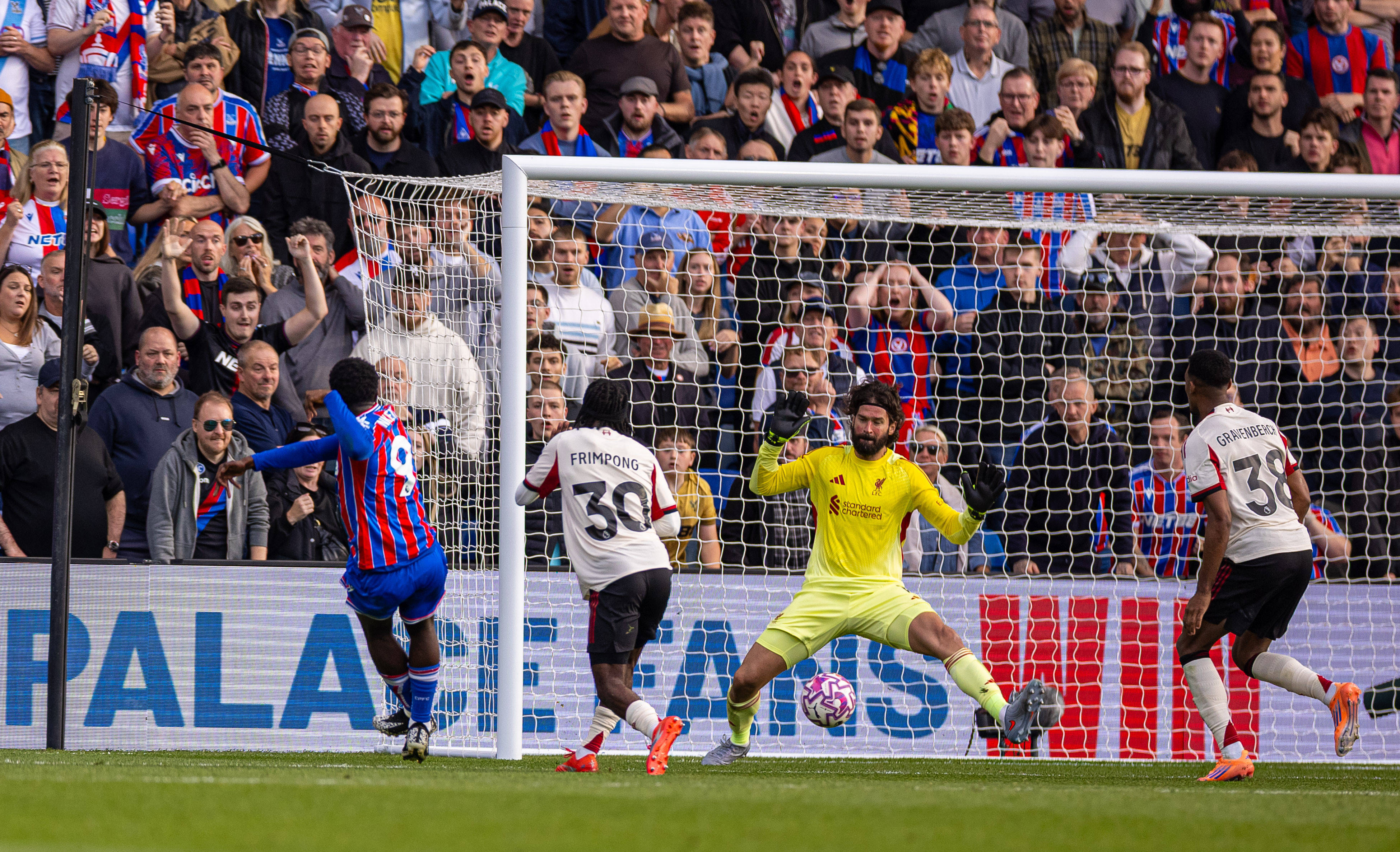 水晶宫在第9分钟最初破门。那时他们发出角球,在利物浦门前引起一派絮聒,萨尔趁乱扫射破门。随后,他们又屡次制造杀机,其中包括一次马特塔射门击中门框。若不是门将阿利松屡献骁勇扑救,利物浦上半时即已大比分逾期。