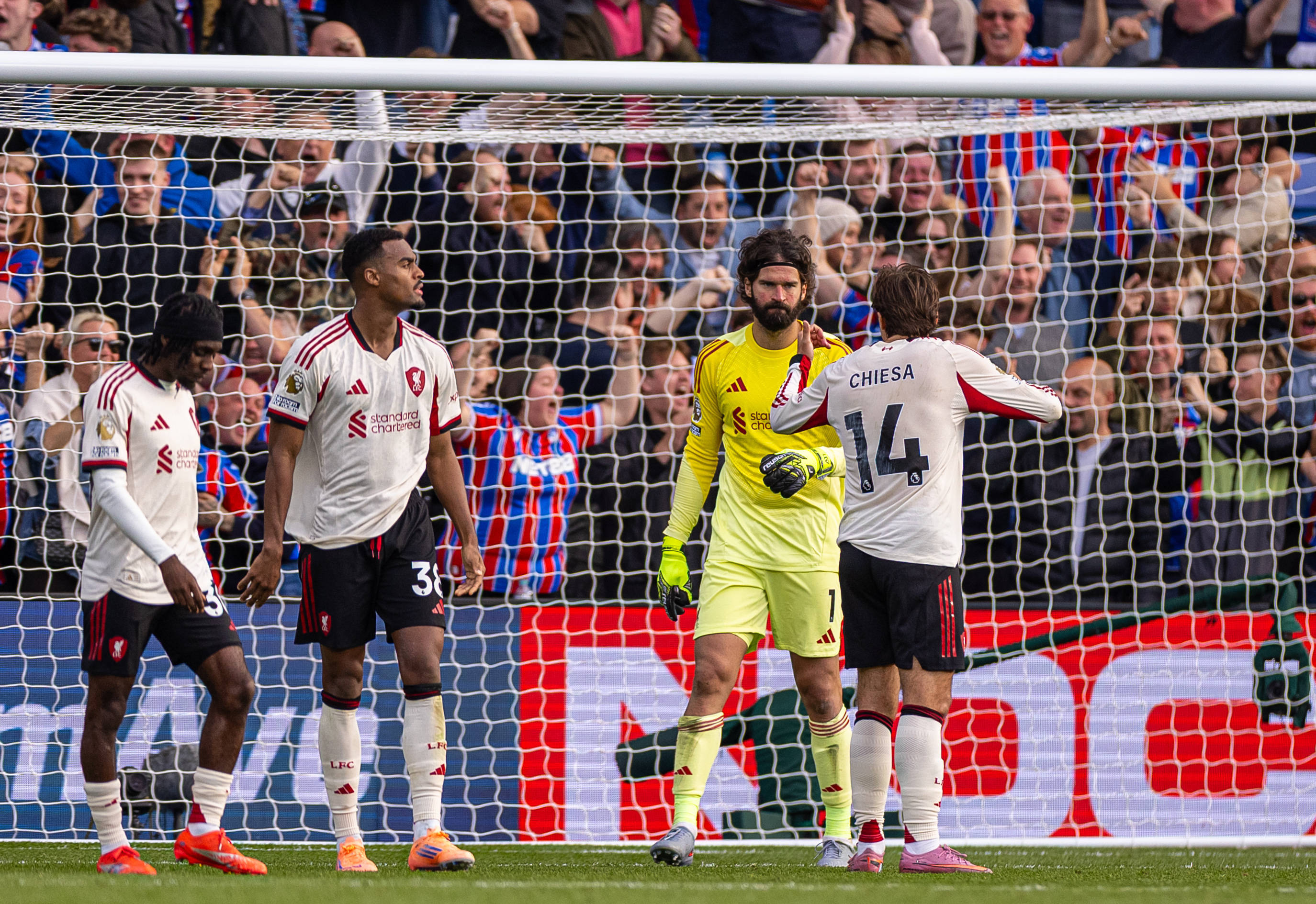 9月27日,利物浦队门将阿利松(右二)在水晶宫队补时阶段进球后。新华社发下半时,利物浦的场上头貌略有好转。第87分钟时,基耶萨门前抽射为客队扳平比分。补时阶段,眼看比赛行将以平局收尾之际,水晶宫扔出“手榴弹式”界外球。皮球直飞利物浦门前,在经由两边流畅三次争顶后,落在门前左侧恩凯蒂亚的眼下,他趁势拔脚射门,献艺“绝杀”。至此,水晶宫在各项矜重比赛中流畅18场不败,亦然现在英超独一保握不败的球队。
