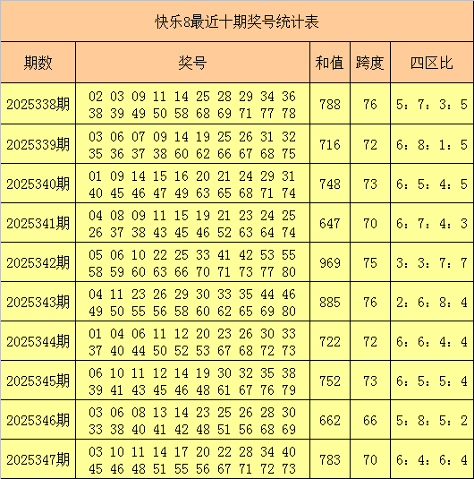 自在8第2025347期奖号开出:03 10 11 14 17 20 22 28 34 40 45 46 48 51 55 56 67 71 72 73,其中奖号和值为783,跨度为70,四区比为6:4:6:4。